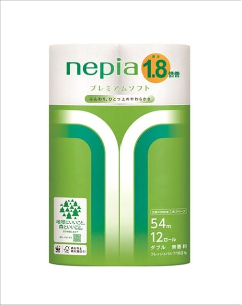 ネピアプレミアムソフトトイレットロール1.8倍巻12ロールダブル54M【トイレットペーパー】